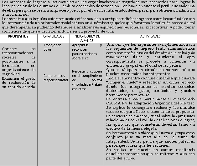 Propuesta de abordaje: Apreciación sobre rol en Centros de formación a organizaciones de seguridad